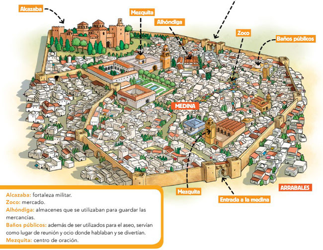 − un centro llamado medina: donde vivían los artesanos y los comerciantes.