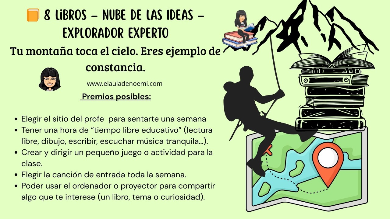 Tu misión es construir tu propia montaña de libros. Con cada libro que termines, pondrás un escalón más hasta llegar a la cima. Y cuando mires tu montaña terminada, verás todo lo que lograste y todo lo que creciste como lector y como persona.